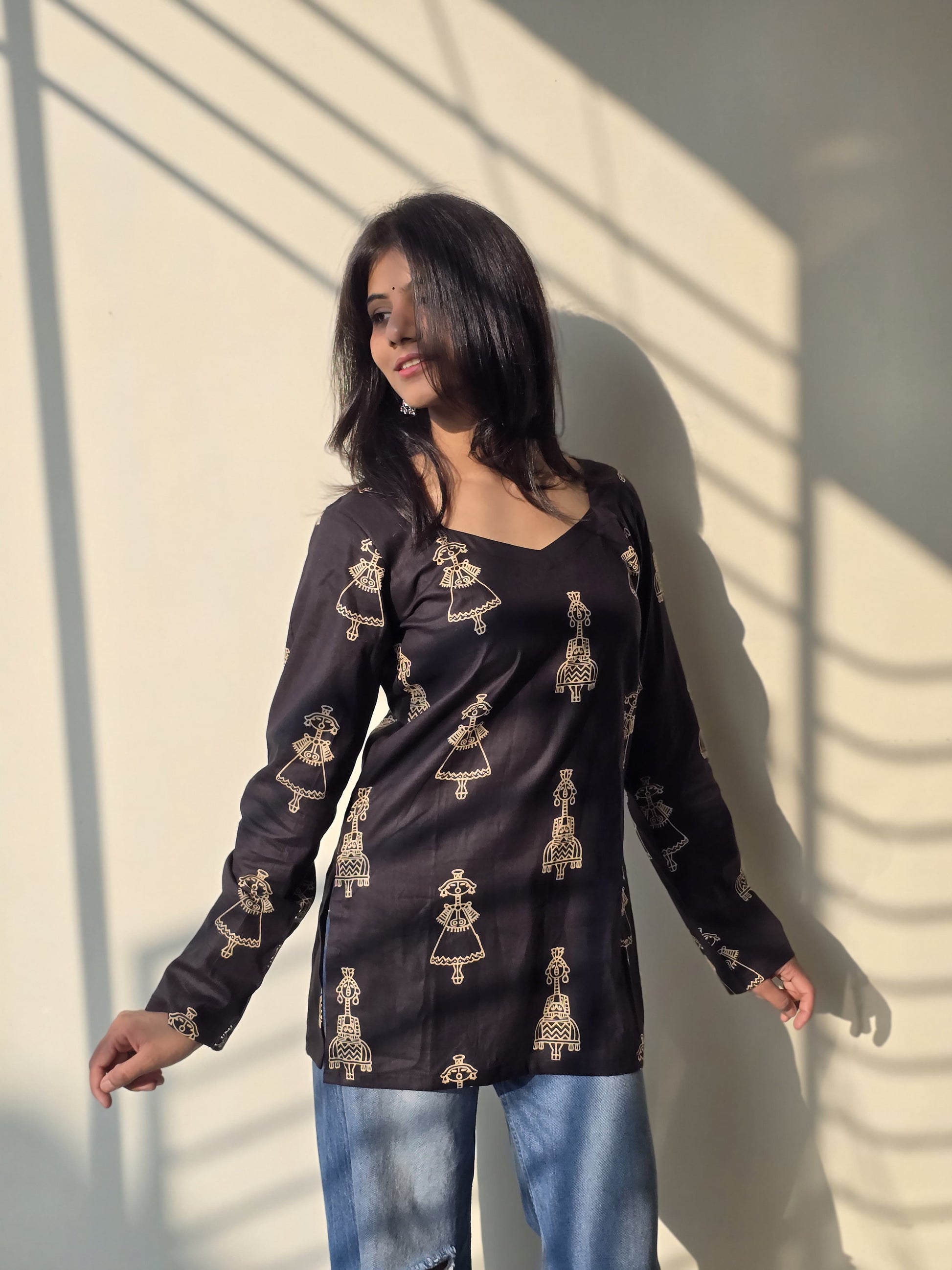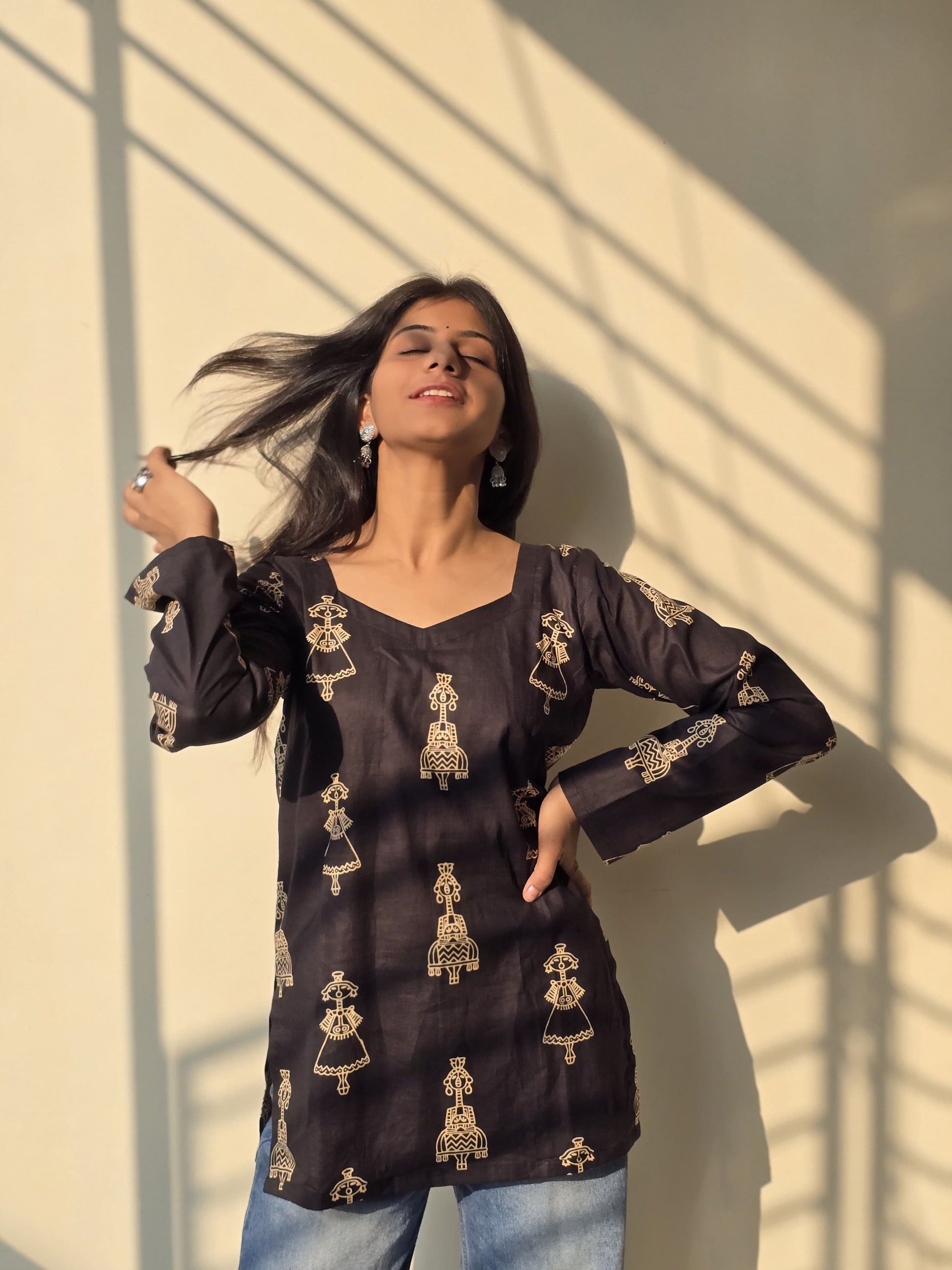 Lai-la V-neck Kurti by Milap features a clean silhouette, comfortable fit & a cotton–linen blend fabric - perfect for college, office, outings and everyday wear.